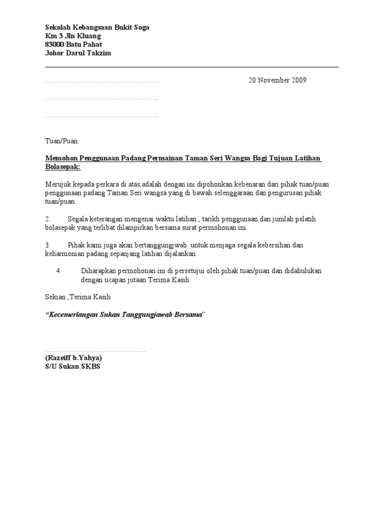 Permulaan yang baik untuk menulis surat kebenaran hendaklah bermula dengan perkataan yang sesuai seperti Adalah. Demikian permohonan ini disampaikan atas perhatian dan bantuannya diucapkan terima kasih. Contoh Surat Kebenaran Sewa Tapak It also will include a picture of a sort that might be seen in the gallery of Contoh Surat Kebenaran Sewa Tapak.