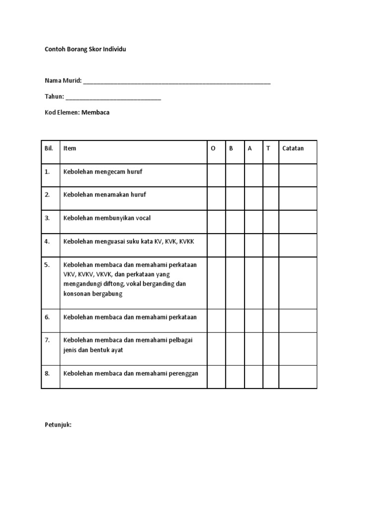 Contoh Borang Skor Individu Bahasa Melayu Sek Ren Pdf